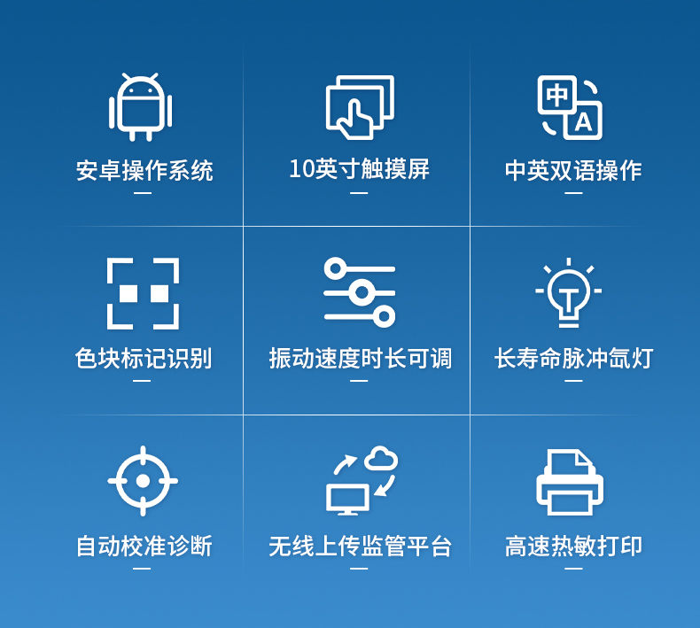 【產(chǎn)品簡(jiǎn)介】Android 10操作系統(tǒng),10英寸高清觸摸屏,中/英文雙語操作系統(tǒng),自動(dòng)化完成檢測(cè)、數(shù)據(jù)存儲(chǔ)及報(bào)告生成