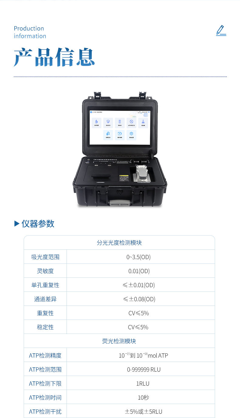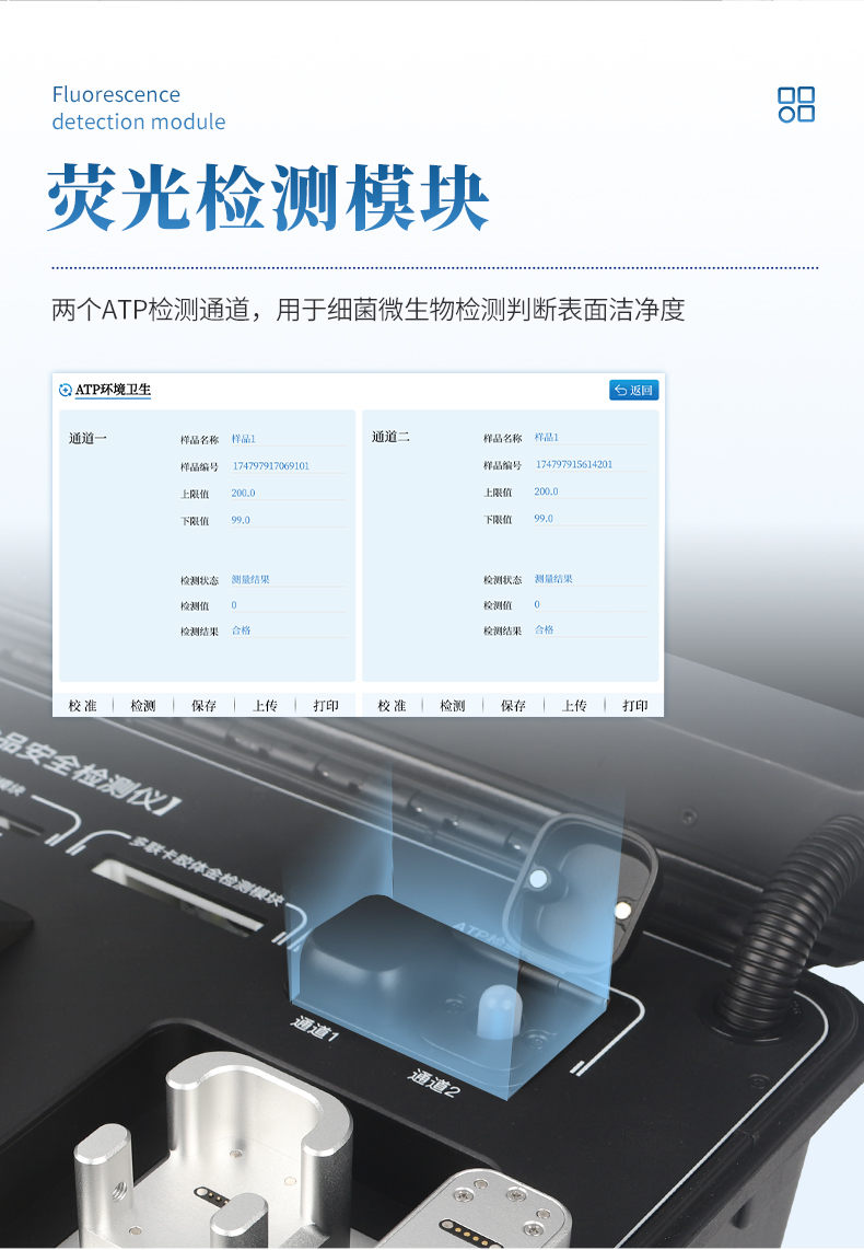 6、★熒光檢測模塊,兩個ATP檢測通道,用于細菌微生物檢測判斷表面潔凈度。